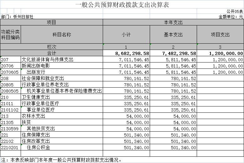忻州日?qǐng)?bào)社年初預(yù)算為8799500元,基本支出7599500元,項(xiàng)目支出1200000元,資金來源為財(cái)政撥款收入,我單位認(rèn)真貫徹落實(shí)會(huì)計(jì)制度,財(cái)務(wù)規(guī)章制度,按規(guī)定的程序和時(shí)間編制上報(bào)年度預(yù)算計(jì)劃,并嚴(yán)格執(zhí)行財(cái)政批準(zhǔn)的預(yù)算計(jì)劃,根據(jù)收入情況統(tǒng)籌安排各項(xiàng)自出。支付表尊,支付進(jìn)度,支付依據(jù)等合規(guī)合法,字符單據(jù)手續(xù)齊全,與預(yù)算相符。