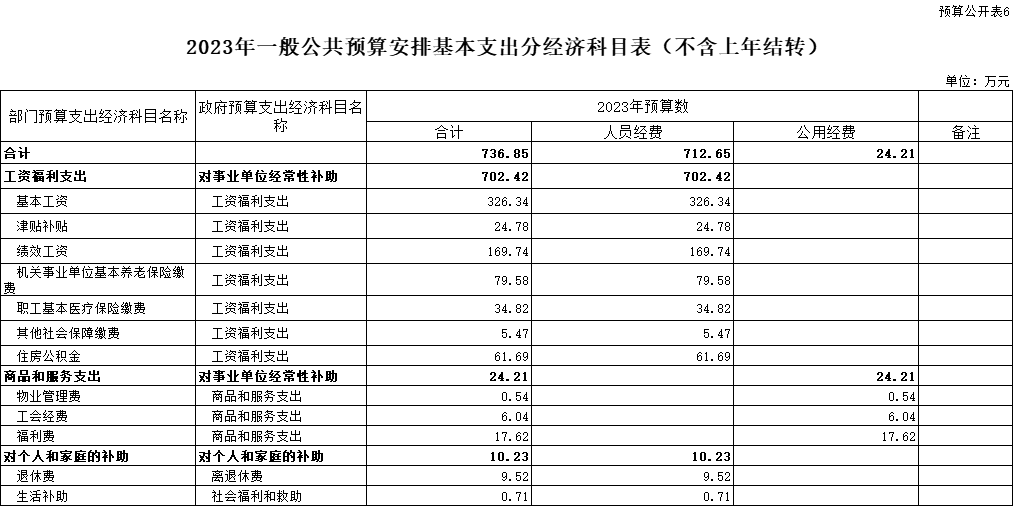 六、一般公共預(yù)算安排基本支出分經(jīng)濟(jì)科目表