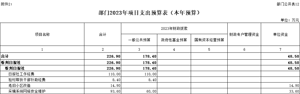 2、部門預(yù)算單位構(gòu)成:忻州日?qǐng)?bào)社是一級(jí)預(yù)算單位,無(wú)下屬單位。部門預(yù)算只有一個(gè)單位,即忻州日?qǐng)?bào)社。