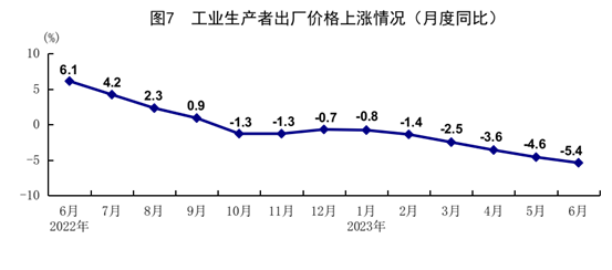 上半年,全國(guó)工業(yè)生產(chǎn)者出廠價(jià)格同比下降3.1%。其中,6月份同比下降5.4%,環(huán)比下降0.8%。上半年,工業(yè)生產(chǎn)者購(gòu)進(jìn)價(jià)格同比下降3.0%。其中,6月份同比下降6.5%,環(huán)比下降1.1%。