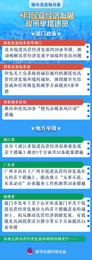 8月份以來,針對民營企業(yè)面臨的痛點、堵點、難點,從中央到地方密集推出系列政策舉措,旨在激發(fā)民間投資活力,鼓勵企業(yè)敢闖、敢投、敢擔(dān)風(fēng)險。