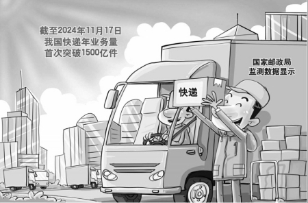 據(jù)新華社電 國(guó)家郵政局監(jiān)測(cè)數(shù)據(jù)顯示,截至11月17日,我國(guó)快遞年業(yè)務(wù)量首次突破1500億件。