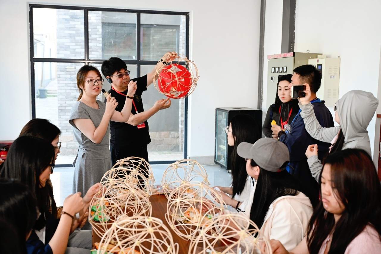 在“滾燈”文化公園,記者團(tuán)親身感受了一把“潮鄉(xiāng)”的“滾燈”藝術(shù)的魅力。“滾燈”源自江南一帶的民間節(jié)日慶典,融合了舞蹈、技巧與體育精髓,愛好者展示給記者們的金港村“滾燈”,其制作工藝之考究讓大伙都嘖嘖贊嘆。