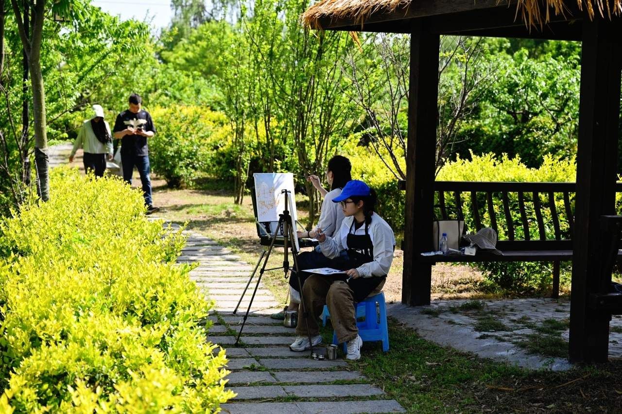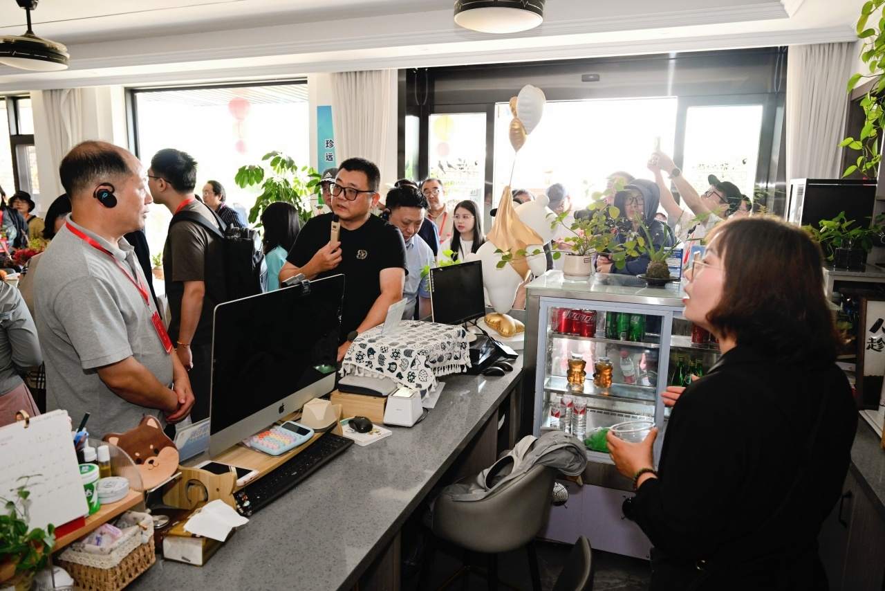 村里蕓溪民宿的“潮趣”營(yíng)地,讓記者們見識(shí)到了“潮鄉(xiāng)”傳統(tǒng)之外時(shí)尚、新銳一面。民宿主理人是80后返鄉(xiāng)青年宋曉燕,在“家門口”實(shí)現(xiàn)了開民宿的夢(mèng)想?!笆|溪”背靠浙北最美公路翁金線、面朝錢塘江,如今,有了這“潮趣”營(yíng)地,就能讓客人們想安靜時(shí)要一間房、泡一壺茶;愛熱鬧的,呼朋喚友一起燒烤、露營(yíng),共赴“江岸野趣”;或是帶著小朋友來(lái)摘野菜、喂小動(dòng)物,與大自然來(lái)一次親密接觸……宋曉燕將“蕓溪”經(jīng)營(yíng)成了具有鄉(xiāng)村煙火氣、人情味的驛站,讓南來(lái)北往的客人們?cè)谶@里找到了“回家”的感覺。已是“銀宿”級(jí)別的“蕓溪”,因?yàn)闃O好的口碑,目前客房訂單已排到“五一”假期。