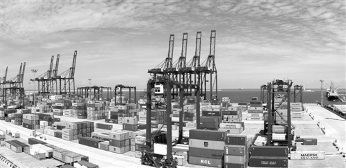科倫坡南港集裝箱碼頭是中國和斯里蘭卡共建“21世紀(jì)海上絲綢之路”務(wù)實(shí)對(duì)接標(biāo)桿性項(xiàng)目,是南亞最深的集裝箱碼頭。據(jù)測算,南港碼頭項(xiàng)目在35年合同期直接稅賦將達(dá)18億美元。同時(shí),在建設(shè)和經(jīng)營期間可分別為當(dāng)?shù)貏?chuàng)造3000個(gè)和7500個(gè)直接就業(yè)機(jī)會(huì)。圖為科倫坡南港集裝箱碼頭。 新華社發(fā)