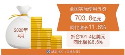 本報(bào)北京5月14日電 (記者王珂)商務(wù)部14日舉行的網(wǎng)上例行新聞發(fā)布會(huì)上,商務(wù)部新聞發(fā)言人高峰介紹,4月,全國(guó)實(shí)際使用外資703.6億元,同比增長(zhǎng)11.8%。
