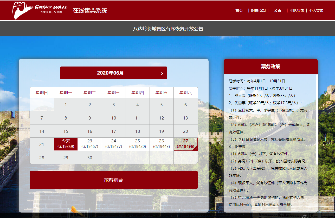 記者注意到,截至6月22日,北京最熱門的景區(qū)之一八達嶺長城在端午期間每日仍有近2萬票。不過故宮博物院門票已售罄。
