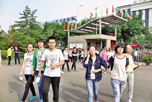 6月6日下午5點,忻州一中考點的考生們進入校區(qū),確認(rèn)、熟悉考場環(huán)境