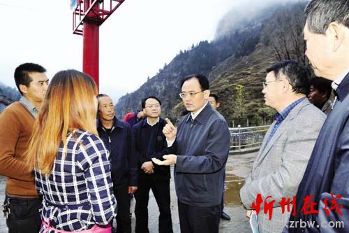 圖為市委副書記、 市長鄭連生在代縣神澗村與縣鄉(xiāng)村干部探討農(nóng)村貧困人口脫貧大計。 石俊文 攝