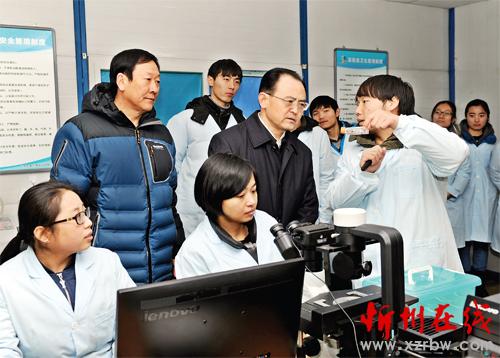 圖為市委書記李俊明在開發(fā)區(qū)新入駐正在建設(shè)中的山西培森生物制品公司調(diào)研。