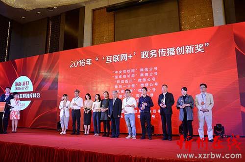 本報(bào)訊 12月22日,首屆全國(guó)互聯(lián)網(wǎng)智庫(kù)峰會(huì)暨第四屆網(wǎng)絡(luò)輿情論壇在海南省??谑新≈卣匍_(kāi)。中央及各?。ㄊ?、自治區(qū))宣傳和網(wǎng)信部門(mén)領(lǐng)導(dǎo)、國(guó)內(nèi)業(yè)界知名專(zhuān)家、學(xué)者、政務(wù)新媒體代表等200余人齊聚一堂,圍繞“‘十三五’供給側(cè)改革背景下輿論新格局”主題,深入探討互聯(lián)網(wǎng)內(nèi)容建設(shè)與供給、政務(wù)輿情回應(yīng)和引導(dǎo)的新理念、新思路、新格局。會(huì)議期間,舉行了2016年“互聯(lián)網(wǎng)+政務(wù)傳播創(chuàng)新獎(jiǎng)”、“政務(wù)輿情回應(yīng)優(yōu)秀獎(jiǎng)”、“城市新媒體傳播優(yōu)秀獎(jiǎng)”和“全國(guó)政法新媒體建設(shè)優(yōu)秀獎(jiǎng)”頒獎(jiǎng)儀式。忻州隨手拍榮獲2016年全國(guó)“互聯(lián)網(wǎng)+政務(wù)傳播創(chuàng)新獎(jiǎng)”,為十佳之一。