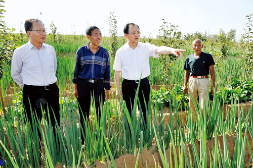 高城鄉(xiāng)高城村多年種植商品辣椒,輻射帶動(dòng)全區(qū)商品椒種植達(dá)10萬(wàn)余畝。當(dāng)前正是辣椒收儲(chǔ)加工的高峰期,李俊明實(shí)地察看辣椒產(chǎn)業(yè)園區(qū)內(nèi)的收儲(chǔ)加工情況,了解育苗大棚經(jīng)營(yíng)收入,詢問(wèn)送售辣椒農(nóng)民的種植收益,詳細(xì)了解帶動(dòng)貧困群眾增收情況。李俊明指出,要持續(xù)深入打造辣椒生產(chǎn)全產(chǎn)業(yè)鏈條,通過(guò)規(guī)?;?、品牌化、標(biāo)準(zhǔn)化以及線上線下同步發(fā)展,建立產(chǎn)業(yè)發(fā)展與貧困群眾的利益聯(lián)結(jié)機(jī)制,積極吸引周邊鄉(xiāng)村貧困群眾參與勞務(wù),帶動(dòng)貧困群眾脫貧增收。董村鎮(zhèn)在傳統(tǒng)種植項(xiàng)目基礎(chǔ)上,由各村黨支部書記帶頭種植無(wú)公害紅薯、菌肥茄子、高油花生、大蔥、大蒜、板藍(lán)根等示范田,引導(dǎo)農(nóng)民調(diào)整種植結(jié)構(gòu)。李俊明實(shí)地察看了連片種植的百余畝高油花生種植田,詳細(xì)詢問(wèn)實(shí)際產(chǎn)出比。他說(shuō),農(nóng)業(yè)供給側(cè)結(jié)構(gòu)性改革既要發(fā)揮好市場(chǎng)的調(diào)節(jié)作用,也要發(fā)揮政府的引導(dǎo)作用。要學(xué)習(xí)忻府區(qū)支部書記示范田的有益創(chuàng)新,通過(guò)支部書記、村主任等村干部帶頭,讓農(nóng)民在看得見的收益引導(dǎo)下自覺(jué)調(diào)整種植結(jié)構(gòu),把“三基”建設(shè)的成果最終體現(xiàn)到帶動(dòng)農(nóng)民脫貧增收上。