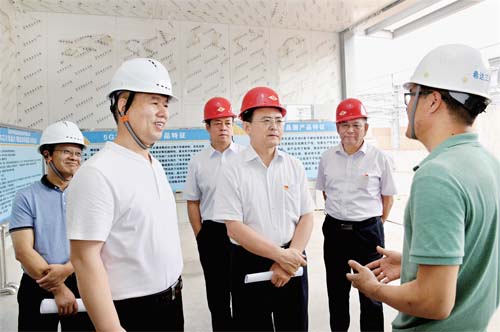 圖為省人大常委會副主任、市委書記李俊明在忻州經濟開發(fā)區(qū)調研藍寶石晶體及晶片制造加工項目建設情況。本報記者 劉紀森 攝