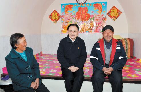 圖為省人大常委會副主任、市委書記李俊明在偏關(guān)縣新關(guān)鎮(zhèn)高家上石會村高長后家了解增收脫貧情況。本報記者 宮愛文