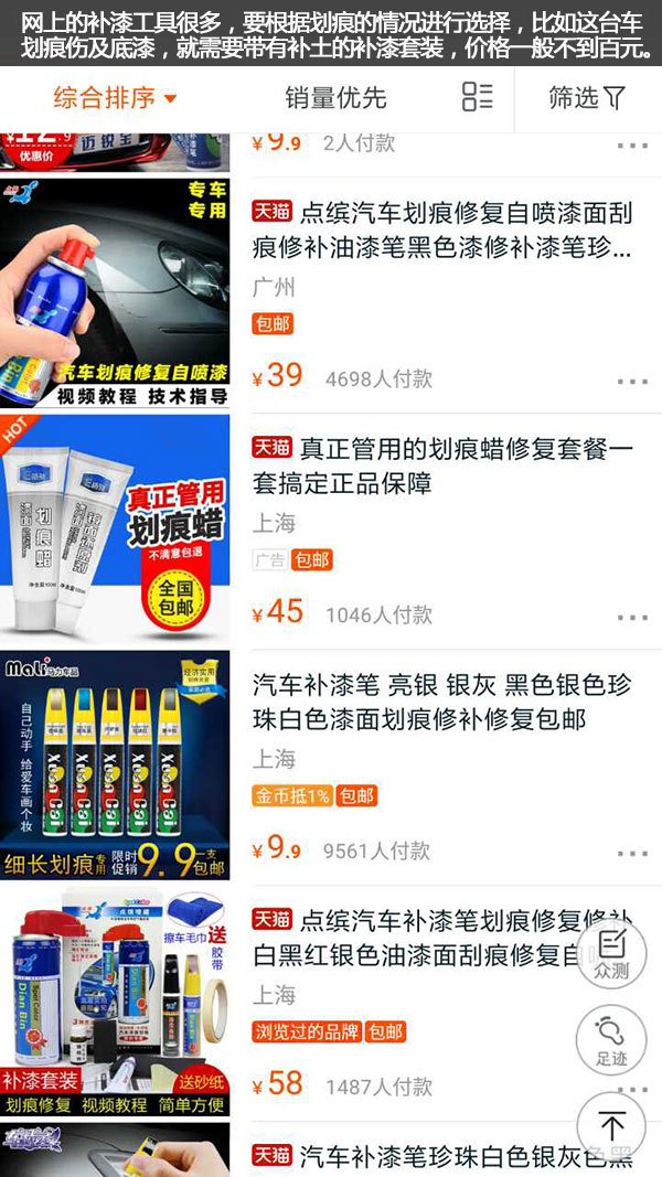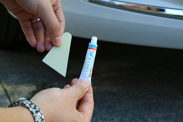 可以看到這輛車的劃痕傷至底漆了,為了更好的固漆,我們需要進(jìn)行簡單的補土或者叫打膩子,對凹凸不平之處也可以很好的找平。這種小管的補土很便宜,電商賣10元左右,而全套的補漆工具不足百元。