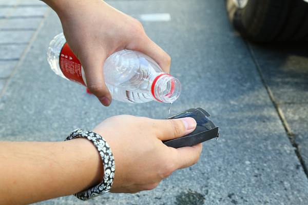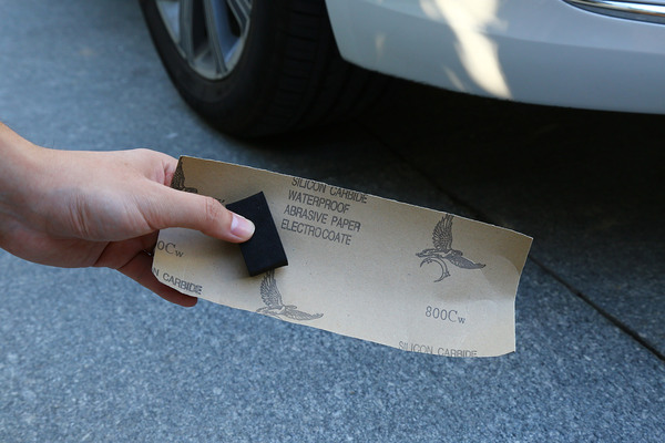 開始補漆作業(yè),先清洗劃痕位置以及周圍地方。先用800的砂紙進(jìn)行打磨,墊上一塊墊木沾一些水,可以更好掌握砂紙打磨時的力度。將劃痕處的漆面以及傷痕打磨平整并再次清洗擦干。