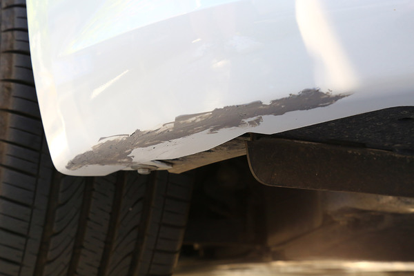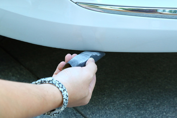 我們找來一輛前保險杠底部被蹭得面目全非的可憐車,在選擇補漆工具時要根據(jù)劃痕的情況進(jìn)行合理選擇,不過就算是最嚴(yán)重的大面積傷及底漆的修補套裝,一般也不超過百元。