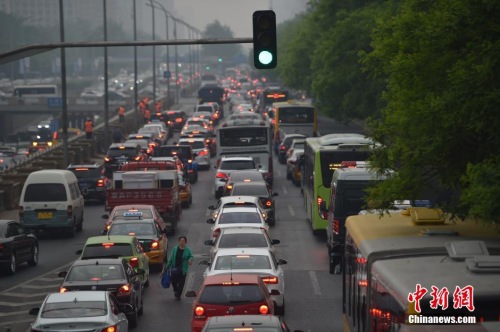 資料圖:圖為北京東三環(huán)主路擁堵嚴(yán)重。中新網(wǎng)記者 金碩 攝