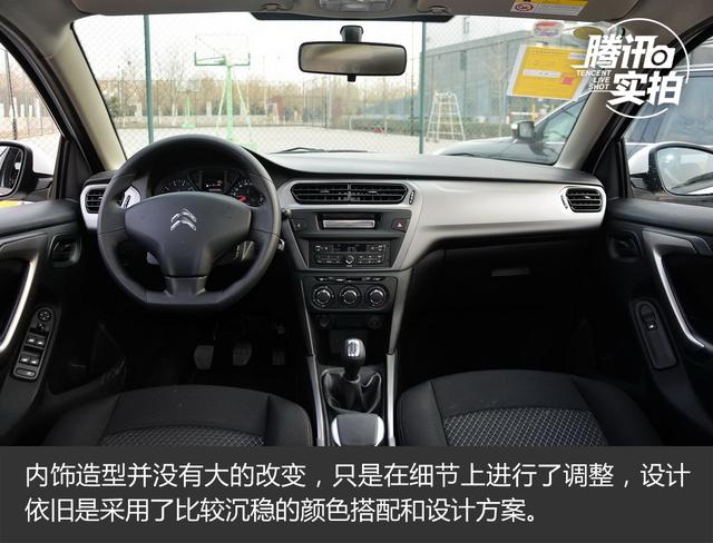 內(nèi)飾造型并沒有大的改變,只是在細(xì)節(jié)上進(jìn)行了調(diào)整,設(shè)計依舊是采用了比較沉穩(wěn)的顏色搭配和設(shè)計方案。中控臺的材質(zhì)還是硬塑料,做工和顏色搭配還算不錯,畢竟它是一臺雪鐵龍的入門級車型。三幅平底方向盤造型看著令人很有好感,而且手感也不錯,支持上下兩向調(diào)節(jié),并不能前后拉伸。指針式儀表盤黑底白字清晰易讀,表盤上新增了雪鐵龍法文LOGO和三叉星式圖案,上方顯示屏的顏色也從紅色變?yōu)榱税咨6嗝襟w系統(tǒng)功能比較單一,可以提供收音機(jī)和通過底部USB接駁外部音源。