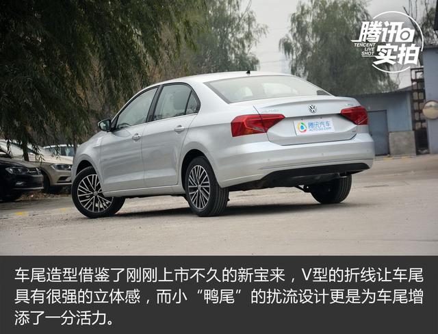 車身側(cè)面沒有做太大改變,延續(xù)了老款車型簡單流暢的線條感。后視鏡的造型也更富棱角,側(cè)轉(zhuǎn)向燈從翼子板移至后視鏡,同時采用了LED光源。門把手采用了與車身同色的設(shè)計,上方增加的鍍鉻裝飾條恰到好處。雙色多幅輪轂是一大亮點,造型動感時尚。采用韓泰KINERGY EX輪胎,尺寸為195/55 R16。制動系統(tǒng)為前輪通風(fēng)盤式,后輪鼓式。車尾造型借鑒了剛剛上市不久的新寶來,V型的折線讓車尾具有很強的立體感,而小“鴨尾”的擾流設(shè)計更是為車尾增添了一分活力。立體造型的尾燈與車尾的折線融為一體,內(nèi)部折線的造型,具有很高的辨識度。車尾的數(shù)字180代表這臺車裝配的是1.5L自然吸氣發(fā)動機(jī)。