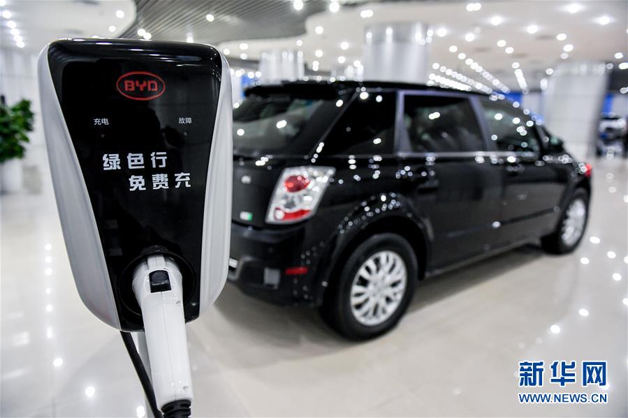 這是在深圳比亞迪總部展廳拍攝的比亞迪新能源汽車和充電樁展品(2018年11月30日攝)。 新華社記者毛思倩攝