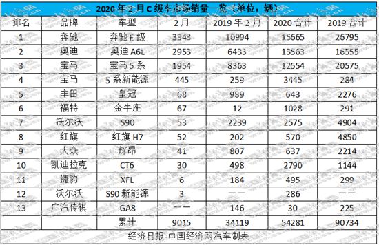 受疫情影響,國內(nèi)汽車產(chǎn)銷在2月基本處于停擺狀態(tài)。聚焦國產(chǎn)C級車市場,幾乎全部車型的銷量都出現(xiàn)暴跌,有的甚至沒有出現(xiàn)在行業(yè)的銷量統(tǒng)計表上。經(jīng)濟日報-中國經(jīng)濟網(wǎng)記者梳理后發(fā)現(xiàn),共有來自10個品牌的12款車型公布了銷量數(shù)據(jù):2月,國產(chǎn)C級車的累計銷量為9015輛,環(huán)比下滑80.08%,與去年同期相比下降73.58%;今年前2個月的累計銷量為54281輛,同比下滑40.18%。