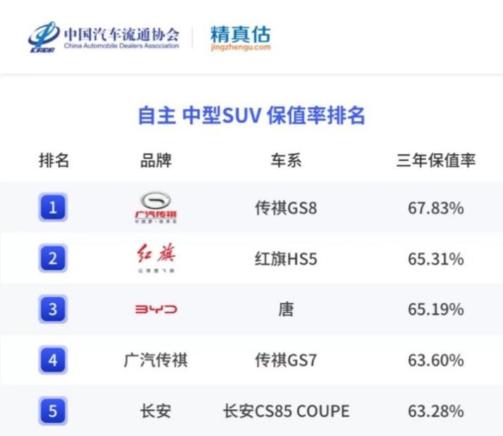 除了消費(fèi)者用終端銷量為這款車投票以外,在中國汽車流通協(xié)會發(fā)布的《中國汽車品牌保值率報(bào)告》中,廣汽傳祺GS8成為了2021和2022年度的自主中型SUV保值率第一的車型,而在2023年1月和3月的報(bào)告當(dāng)中,GS8的保值率也穩(wěn)居第一,這相當(dāng)于二手車行業(yè)也肯定了這款車的價(jià)值。