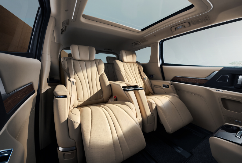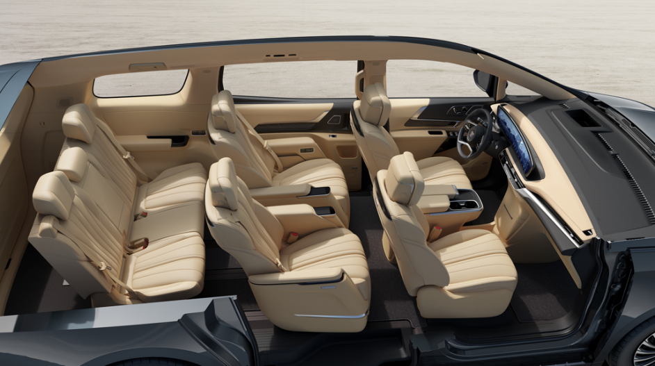 值得一提的是,七座臻享款第二排憑借電動橫滑設計,讓兩個座椅可以獨立橫向移動,既能靠攏后讓乘客交流親密無間,也可向兩側分開形成190mm中央寬敞通道,讓進出第三排更為便捷。根據用戶高頻出行場景,七座臻享款提供7項一鍵奢享座椅聯動模式,包括三排便捷上/下車、后備箱延伸、休憩、舒適、近享、入眠模式,通過前排中控屏、頂襯旋鈕或二排扶手屏控制,讓用車生活更愜意舒心。新車后備箱標準容積為604升,能輕松放置4個28吋行李箱;當第三排座椅最大化前移,則可形成縱深1112mm、容積1901升的超大空間,適配更多用車場景需求。
