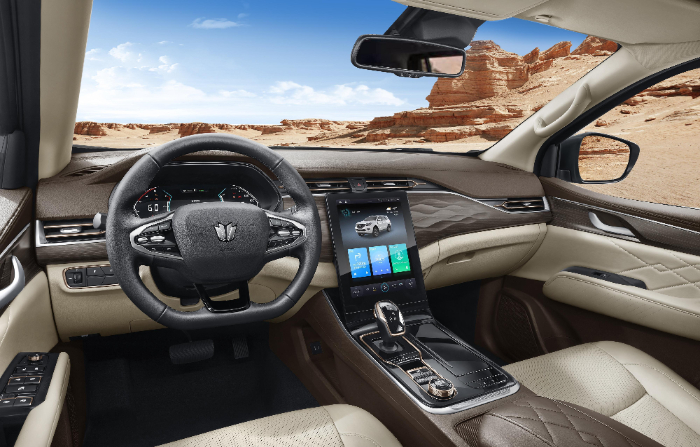 新車選用融合中國元素充滿力量感和品質(zhì)感的全新LOGO,將東方雅致與西方流線型設計相融,具有強烈的視覺沖擊力;車頭的寬闊前臉搭配熏黑中網(wǎng)的蜂窩設計讓整車極具辨識度;車身尺寸方面,新車的長、寬、高分別為4882mm、1850mm、1875mm,軸距為2850mm。