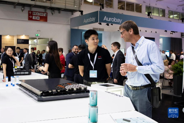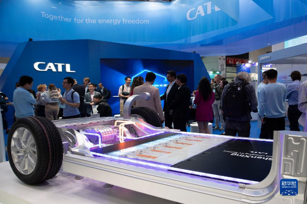 9月5日,人們?cè)诘聡?guó)慕尼黑國(guó)際車(chē)展的寧德時(shí)代展區(qū)咨詢(xún)洽談。