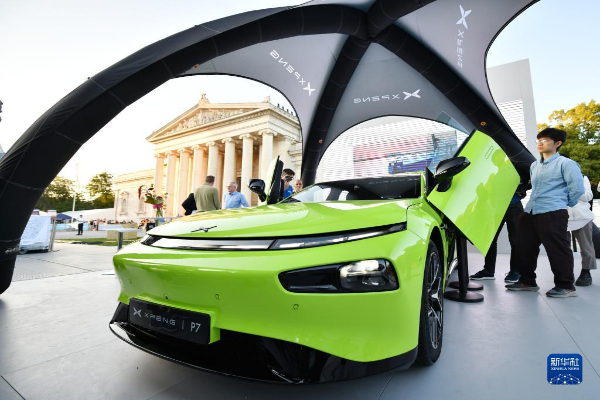 9月5日,人們?cè)诘聡?guó)慕尼黑國(guó)際車(chē)展的城市公共展示區(qū)參觀(guān)小鵬汽車(chē)。