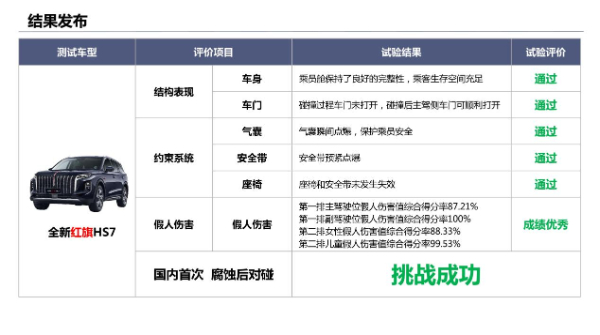 全新紅旗HS7成功通過腐蝕對(duì)碰挑戰(zhàn)并成為全國(guó)首個(gè)通過本次挑戰(zhàn)項(xiàng)目的車型,這一成績(jī)得益于一汽紅旗高品質(zhì)工藝。