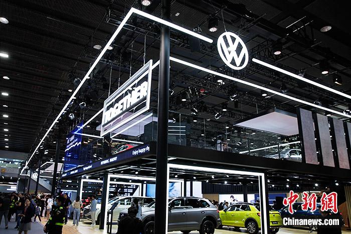 11月17日,上汽大眾汽車有限公司銷售與市場執(zhí)行副總經理、上海上汽大眾汽車銷售有限公司總經理俞經民(中間)參加廣州車展展臺活動。 上汽大眾 供圖