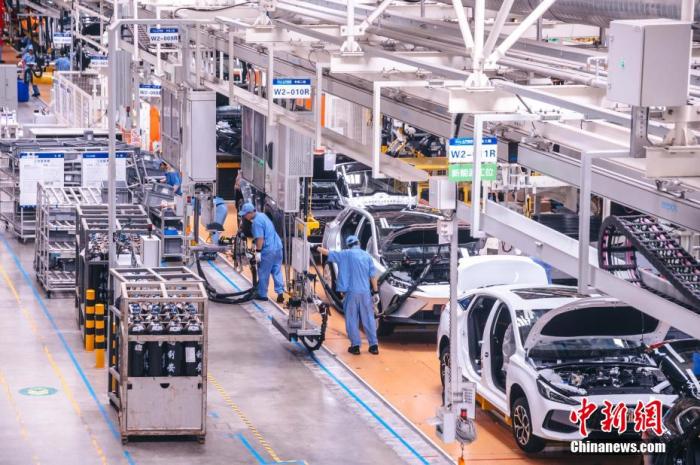 圖為上汽集團(tuán)寧德基地總裝車間內(nèi),工人在新能源汽車生產(chǎn)線上作業(yè)。李南軒 攝