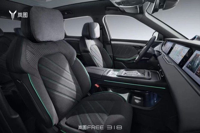 嵐圖FREE 318的內(nèi)飾主要采用了全新的黑+綠配色,大量觸感出色的軟性材質(zhì),滿足視覺和觸覺雙重質(zhì)感,新車不僅搭載了能夠滿足當(dāng)下的智能化體驗(yàn),像前排座椅頭枕等也進(jìn)一步提升了視覺體驗(yàn)。