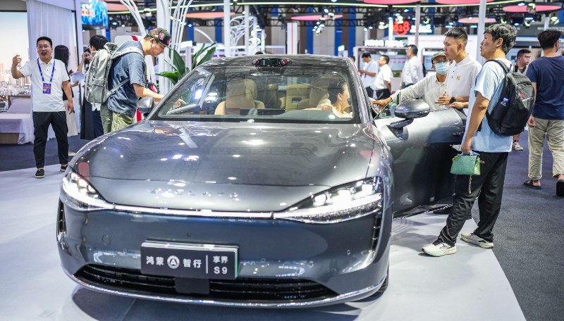 8月28日,觀展者在2024中國(guó)國(guó)際大數(shù)據(jù)產(chǎn)業(yè)博覽會(huì)會(huì)場(chǎng)參觀智能駕駛汽車(chē)。新華社記者 陶亮 攝