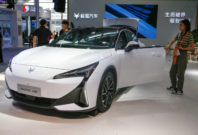 2024年9月13日,參會者在服貿會首鋼園會場參觀極狐新能源汽車。新華社記者 丁洪法 攝