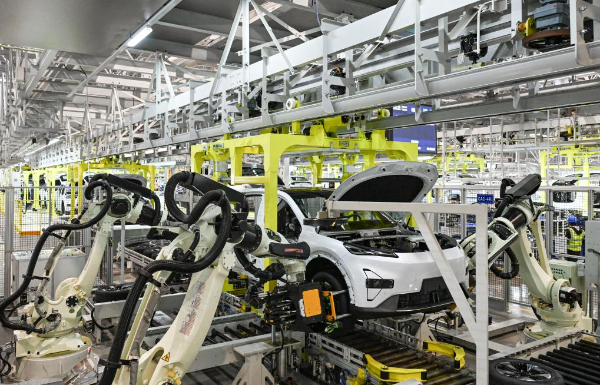2025年1月9日在位于重慶市渝北區(qū)的長(zhǎng)安汽車數(shù)智工廠總裝車間拍攝的自動(dòng)化生產(chǎn)作業(yè)現(xiàn)場(chǎng)。新華社記者 王全超 攝