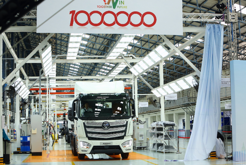 (資料圖片)這是2024年11月27日在泰國(guó)北欖府的北汽福田泰國(guó)工廠拍攝的北汽福田商用汽車在海外銷售第100萬(wàn)輛車下線儀式現(xiàn)場(chǎng)。新華社記者 孫瑋彤 攝