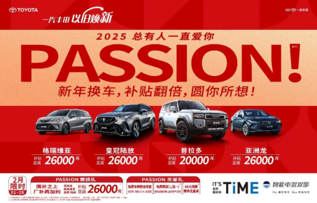 “總有人一直愛(ài)你,一汽豐田便是那份不變的守候。”2月以國(guó)補(bǔ)廠補(bǔ)至高2.6萬(wàn)的置換補(bǔ)貼及多重利好政策拉開(kāi)了蛇年寵粉的序幕,還有更多優(yōu)秀的產(chǎn)品、技術(shù)、服務(wù),及對(duì)用戶的熱愛(ài)與關(guān)懷正在鋪就,值得每位用戶期待。如果你也對(duì)一汽豐田產(chǎn)品感興趣,不妨前往一汽豐田經(jīng)銷店試駕體驗(yàn),新年換新車,超值新春優(yōu)惠不容錯(cuò)過(guò)。