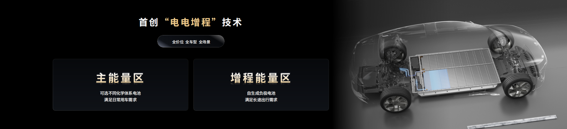 驍遙雙核電池首創(chuàng)的“電電增程”技術(shù),能夠結(jié)合車輛的行駛狀態(tài)和用戶駕駛習(xí)慣,智能調(diào)控兩個能量區(qū)的分配策略。主能量區(qū)可以根據(jù)用戶的駕駛習(xí)慣與場景,適配不同化學(xué)體系的電芯,滿足日常用車需求;增程能量區(qū)可采用高比能自生成負(fù)極技術(shù),提供更大的電量,以滿足用戶的長途出行需求。