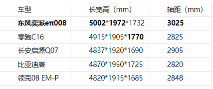 家庭出游的核心訴求是“全員舒適”,空間表現(xiàn)直接影響乘坐體驗(yàn)。在這一點(diǎn)上,東風(fēng)奕派eπ008交出了亮眼答卷,超5米的車(chē)長(zhǎng)(5002mm)與超3米的軸距(3025mm)全面碾壓同級(jí)競(jìng)品。五款車(chē)型中,東風(fēng)奕派eπ008是唯一一款車(chē)長(zhǎng)超過(guò)5米、軸距超過(guò)3米的車(chē)型。更高級(jí)別的車(chē)長(zhǎng)和軸距,帶來(lái)了更充裕的縱向空間,確保每位乘客皆可舒展身姿,盡享愜意旅途。