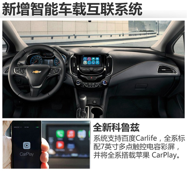 在配置方面,新車(chē)搭載了新一代MyLink智能車(chē)載互聯(lián)系統(tǒng),支持百度Carlife,全系標(biāo)配7英寸多點(diǎn)觸控電容彩屏,并將全系搭載蘋(píng)果 CarPlay。全新科魯茲還將新一代安吉星Onstar智能行車(chē)伙伴和4G LTE原裝集成車(chē)載Wi-Fi,可同時(shí)接入多個(gè)設(shè)備。