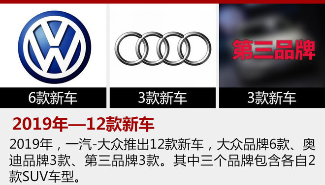 2017年進入下半年,一汽-大眾就開始籌劃2025戰(zhàn)略,以完成更高的銷量目標和更長遠的發(fā)展。同時,官方還表示將在兩年內(nèi)推出23款新車,并包含大眾、奧迪以及第三品牌。此前,一汽-大眾汽車有限公司企業(yè)品牌資訊發(fā)言人、公關(guān)總監(jiān)黃龍向網(wǎng)通社表示:“在未來的車型投放方面, 2018年共有11款新品投放,其中大眾品牌7款,奧迪品牌4款?!?/p>