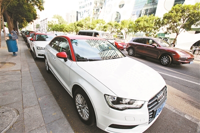 今年6月,北京CBD地區(qū)停放的EZZY分時(shí)租賃奧迪A3轎車 供圖/視覺中國