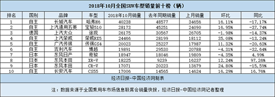 2018年SUV市場(chǎng)的快速冷卻,主要來自于自主品牌的滑落,而至年底,自主品牌也開始拼力自救。10月,自主SUV表現(xiàn)持續(xù)回暖,并共有六款車型入榜SUV銷量前十,但相比去年,表現(xiàn)仍不盡如人意。其中,哈弗H6再現(xiàn)“王者之風(fēng)”,其10月銷量突破4萬輛,再上一個(gè)臺(tái)階;接下來,榮威RX5表現(xiàn)非常突出,是榜單中環(huán)比增速最快的車型,排名也上升至歷史新高;此外,在沉淪多月后,長安旗下終于再次有車入榜。