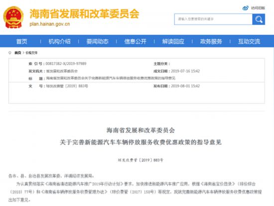 8月1日,海南省發(fā)展和改革委員會發(fā)布《關(guān)于完善新能源汽車車輛停放服務收費優(yōu)惠政策的指導意見》(以下簡稱《意見》),提出一系列指向清晰的指導意見。據(jù)此,海南年內(nèi)將出臺新能源汽車車輛停放服務收費優(yōu)惠政策,不僅比燃油汽車停車收費優(yōu)惠,而且新能源汽車在公共區(qū)域停車還將免費。