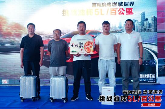 8月31日,吉利繽瑞燃擎探界—挑戰(zhàn)油耗5L/百公里在忻州沃成正式拉開帷幕,比賽從忻州沃成吉利4S店出發(fā),終點(diǎn)為代縣雁門關(guān),全賽程近120公里,賽段包含城市道路、高速公路、208國道等,模擬了最真實(shí)的駕駛路況,最終武先生以5.08L/百公里的油耗成績拿下本次比賽的節(jié)油王稱號!
