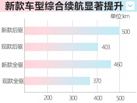 MARVEL X是榮威在2018年推出的一款A(yù)+級純電動SUV,在售車型包括兩電機后驅(qū)、三電機全驅(qū)兩款車型,綜合續(xù)航里程分別為403km、370km。日前,網(wǎng)上車市獲得了新款MARVEL X的相關(guān)消息,新車針對續(xù)航進行了大幅提升,兩電機后驅(qū)、三電機全驅(qū)兩款車綜合續(xù)航分別可達(dá)500km、460km。