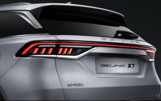 值得一提的是,BEIJING-X7在做到比例合適的同時也沒有放棄對細(xì)節(jié)的雕琢。前臉部分分區(qū)明顯,在梯形中網(wǎng)的周圍也有進(jìn)氣口和霧燈的點(diǎn)綴,只是中網(wǎng)下部的結(jié)構(gòu)稍顯復(fù)雜,不過整體線條還是比較和諧。車尾部分的設(shè)計與前臉也相互呼應(yīng),大量平直線條塑造出了尾門的層次感,而采用平行結(jié)構(gòu)的尾燈光源也為車尾增加了更多細(xì)節(jié),看上去不乏味。